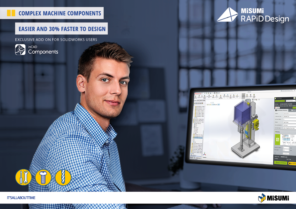 Making the design process as efficient and stress-free as possible – this is the concept behind MISUMI Rapid Design (inCAD Components), a CAD library integrated into SolidWorks that is connected to design tools. We are simplifying the selection, configuration and ordering of machine components with the free add-on. We are constantly developing the programme. In doing so, we incorporate user suggestions to make the user experience the best it possibly can be. As many of us are also designers, we can understand the market requirements and want to reduce the complexity of processes.