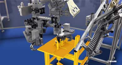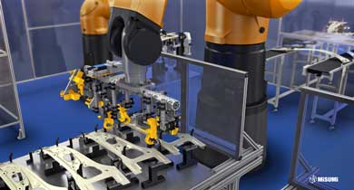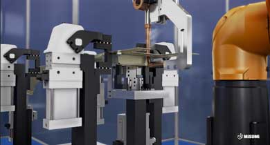 77% of all components of the cell are products from the MISUMI online shop. The broad product range makes MISUMI a one-stop shop for numerous body-in-white applications in automotive engineering.