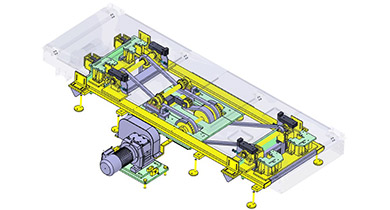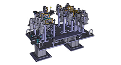 Handling (picking, moving and placing) and process feeding of components, in this case the B-column belt and column panel, is done via gripper, which can pick and place components using a pneumatic clamping device. An exact and reliable positioning is ensured in combination with positioning pins as well as contour blocks/NC blocks (NAAMS). A less accurate positioning can also be performed using vacuum suction cups. Sensors detect whether a component is located in the gripper and whether it is in the correct position.