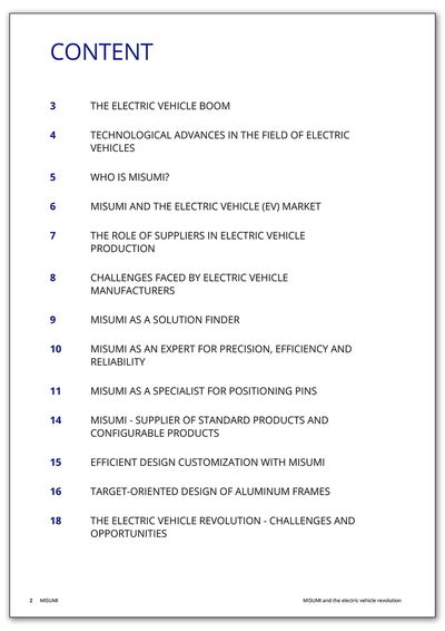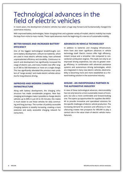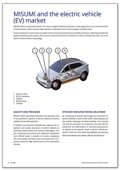 To find out more about how MISUMI is driving the change in the automotive industry with innovative solutions and maximum precision and what impact this will have on the future of electromobility, download the full article now.
