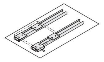 For some sliding rail models additional clamps can be used. Clamps allow simple, manual positioning by pressing the sliding rail with a screw. The tension force is 1.8kg (reference value). The tightening torque is 0.2Nm (If the tightening torque exceeds 0.2Nm the tip of the plastic screw may become deformed.) If the external force is greater than the applied tension force, the locking position will change. When using linear sliding rails in upright or diagonal places, they must be affixed to external structures to avoid blocks from falling down.