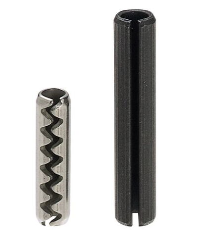 On the left in the illustration you can see a tension pin with a toothed slot. The spacing of the teeth ensures that the teeth mesh when the pin is pressed together. This promotes the roundness of the pin while minimizing lateral movement during vibrations.