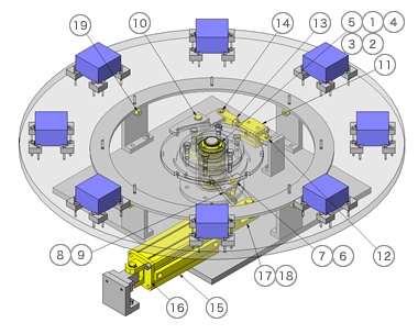 The 8-position-index table is used to rotate the workpiece in different positions during processing. This enables efficient and precise processing of the workpiece in several operations.