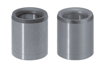 | Cylindrical drill bushings are used in fixtures that are not under a heavy load, e.g. guides for pins or drill guides in soft materials. | Collar drill bushings are easier to mount and when subjected to axial forces, the collar acts as a stop, reliably preventing the drill bushing from sliding into the bore. | Socket drill bushings are also easy to mount, but even easier to remove because the stop pins are removed and the knurled surface makes the bushing easier to grip and therefore remove. |