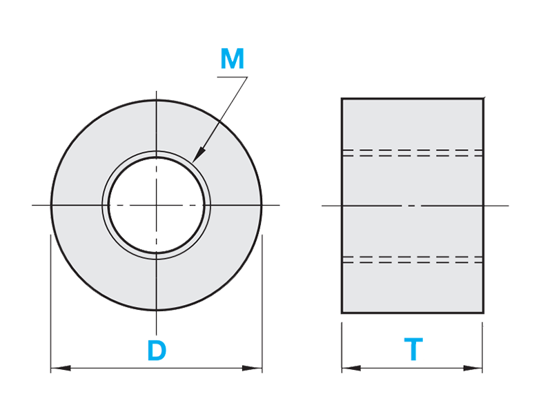 | - Dimension T configurable (in increments of 0.5 mm) - Dimensions D between 6 and 100 mm configurable - M2 to M30 selectable |