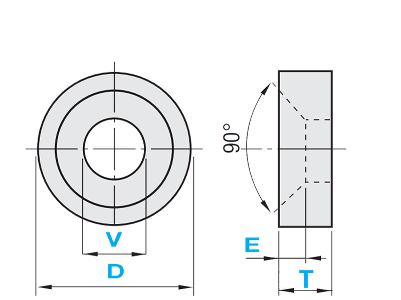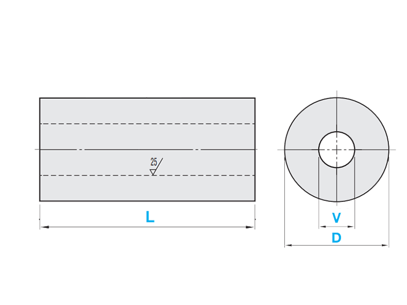 10, 12, 15, 20, 25, 30, 35 mm | Standard class | Dimension L: 0/-0.1 mm | Dimension V: 0.3 mm/0.1 mm Dimension D: 0/-0.2 mm |