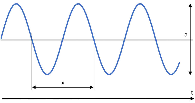 - a - Amplitude peak. The higher the maximum amplitude peak, the more intense - i.e. brighter - the light appears.